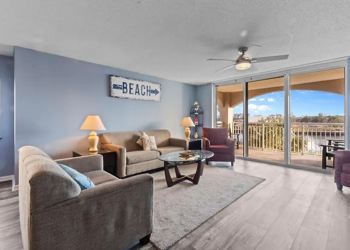 The 3-bedroom Yacht Club Villas #2-301 Myrtle Beach offers swift access to various city sites, such as Ultimate California Pizza, situated approximately 5 minutes' walk away. Providing guests with Wi-Fi and complimentary private parking, this villa is 4.9 km from Beachwood Golf Club.